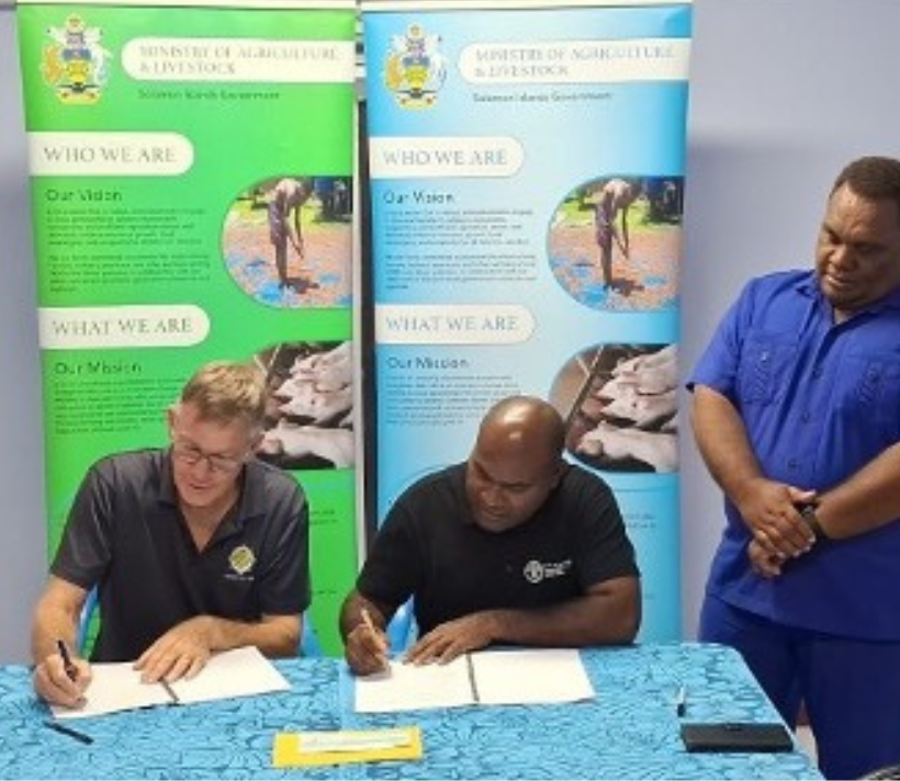 KPSI Managing Director Bob Pollard and MALD PS Dr Samson Viulu signing the grant support agreement